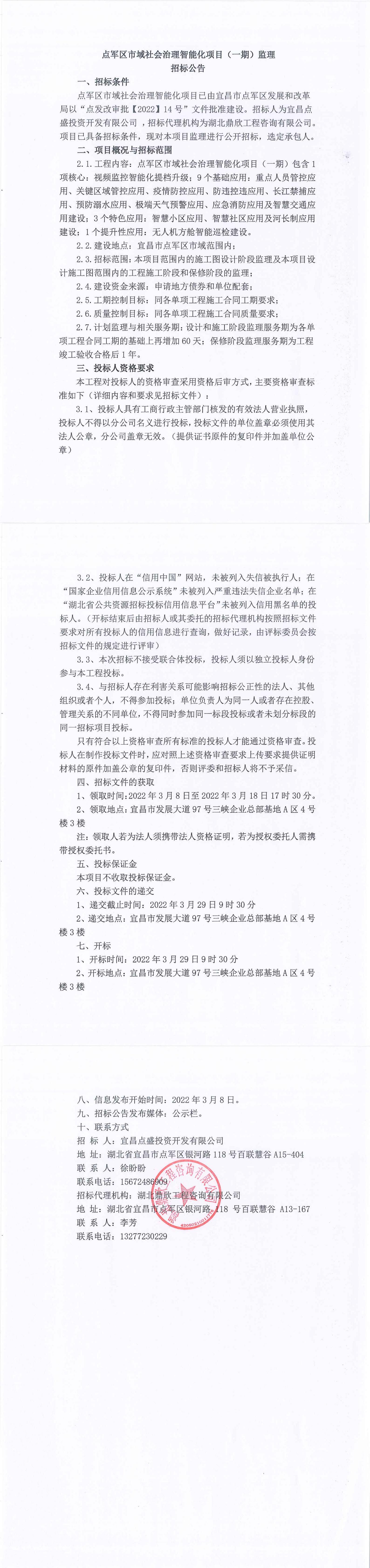 點(diǎn)軍區(qū)市域社會(huì)治理智能化項(xiàng)目(一期)監(jiān)理招標(biāo)公告