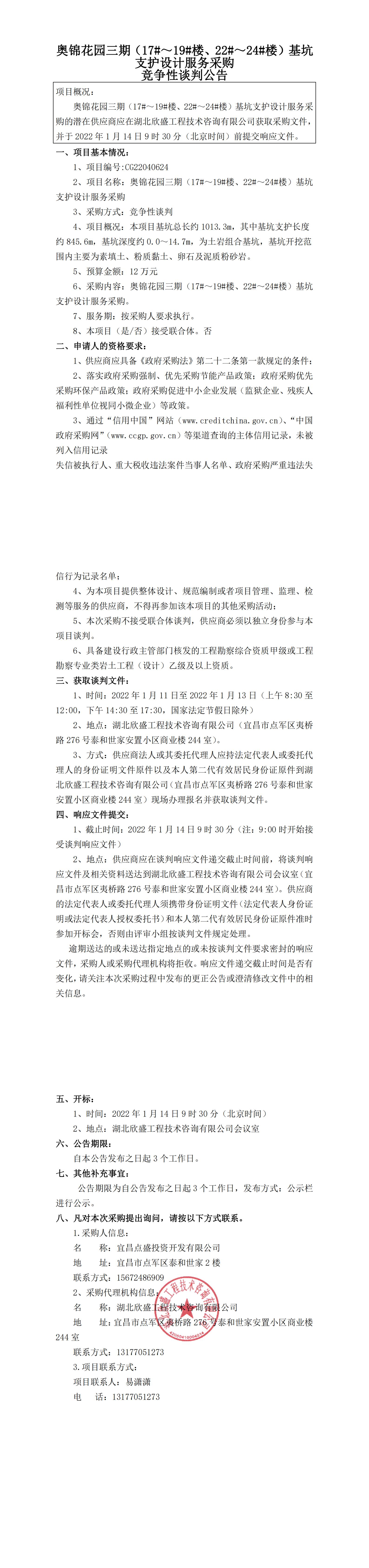 奧錦花園三期(17#~19#樓、22#~24#樓)基坑支護設(shè)計服務采購競爭性談判公告