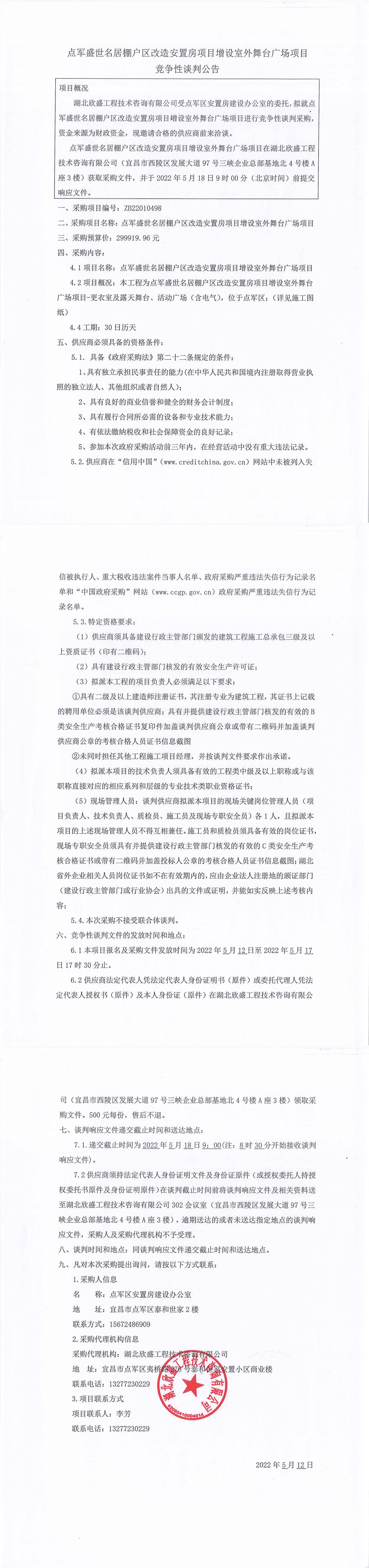 點(diǎn)軍盛世名居棚戶區(qū)改造安置房項(xiàng)目增設(shè)室外舞臺廣場項(xiàng)目談判公告