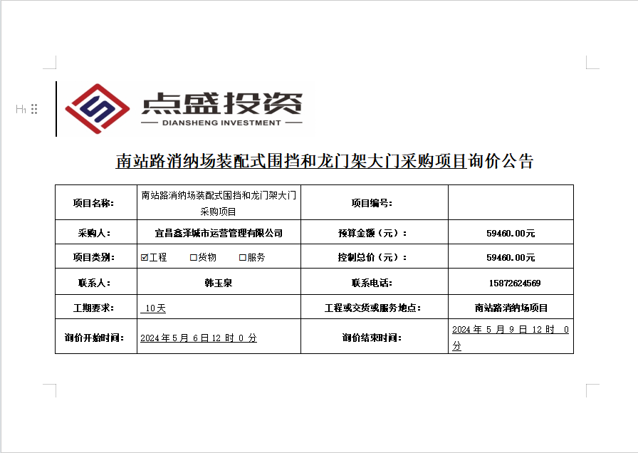 南站路消納場裝配式圍擋和龍門架大門采購項目詢價公告