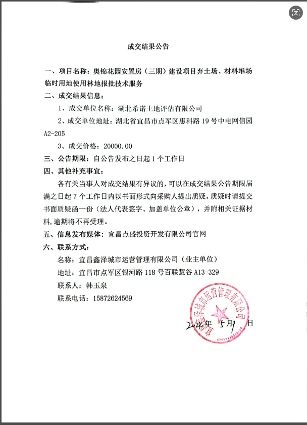 奧錦花園安置房(三期)建設(shè)項目棄土場、材料堆場臨時用地使用林地報批技術(shù)服務(wù)成交公告