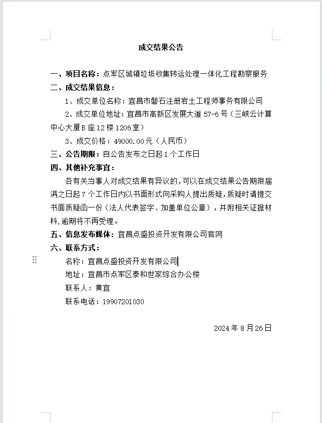 點軍區(qū)城鎮(zhèn)垃圾收集轉運處理一體化工程勘察服務成交公告
