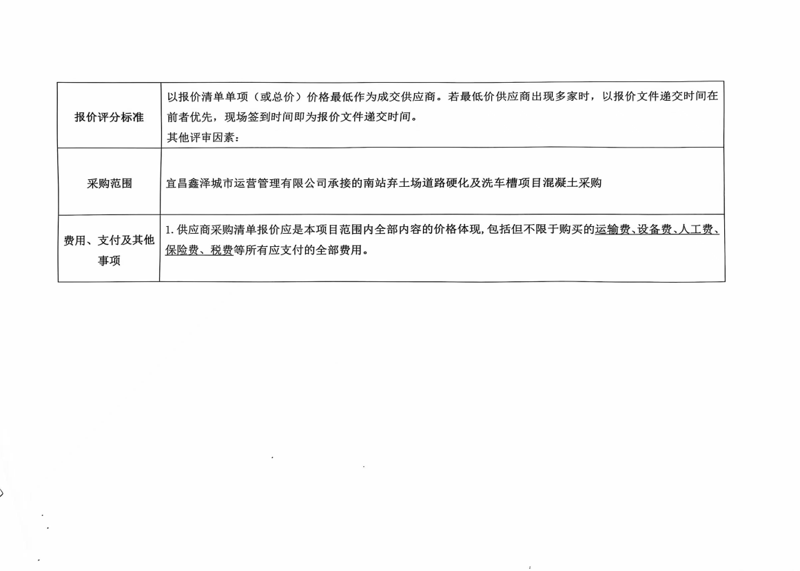 宜昌鑫澤城市運營管理有限公司南站棄土場道路硬化及洗車槽混凝土采購項目詢價公告