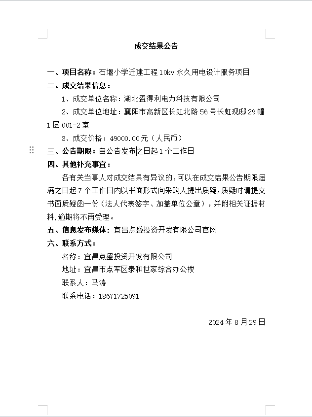 發(fā)布時間:2024/8/29 來源:宜昌點盛投資開發(fā)有限公司 訪問:1012