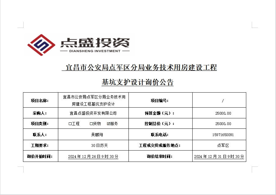 宜昌市公安局點軍區(qū)分局業(yè)務技術(shù)用房建設工程基坑支護設計詢價公告