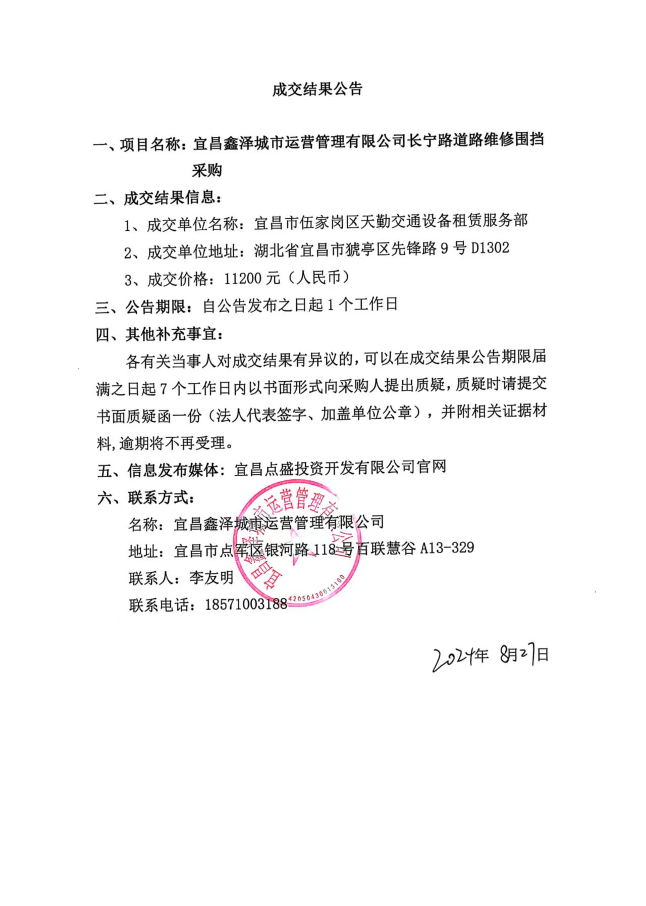 長(zhǎng)寧路道路維修圍擋采購(gòu)成交公告